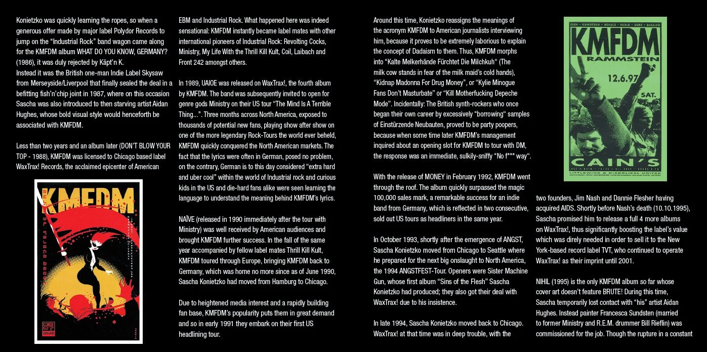 Ranging from remixes by Bradley Bills of CHANT to producer/musician extraordinary Marco Trentacoste and Sascha Konietzko himself, the re-worked versions extract the essence of KMFDM’s music and, at the same time, place new emphases.